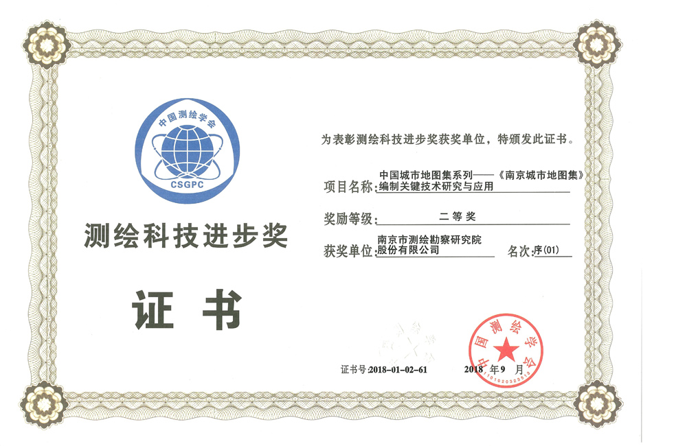 全国测绘科技进步二等奖——中国城市地图集系列-《南京城市地图集》编制关键技术研究与应用