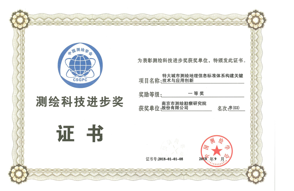 全国测绘科技进步一等奖——特大城市测绘地理信息标准体系构建关键技术与应用创新